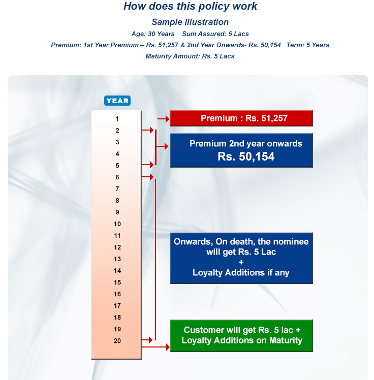 - This plan offers Sum Assured at regular intervals depending on the term of the policy that customer choose
