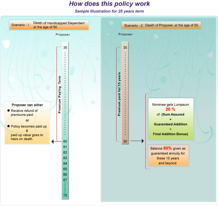 Proposer can take insurance cover on His/Her life to provide for payment of a lump sum and an annuity to the handicapped dependant.